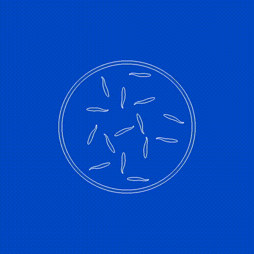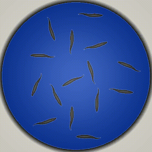 Numerical simulations of several fishes with collision in a fixed domain or in a porous enclosure.
