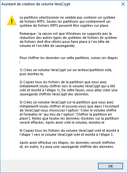 * Attention pour la deuxième option, cela nécessite une partition formatée en NTFS. Tout autre format n’est pas compatible avec cette option et engendrera un message d’alerte.