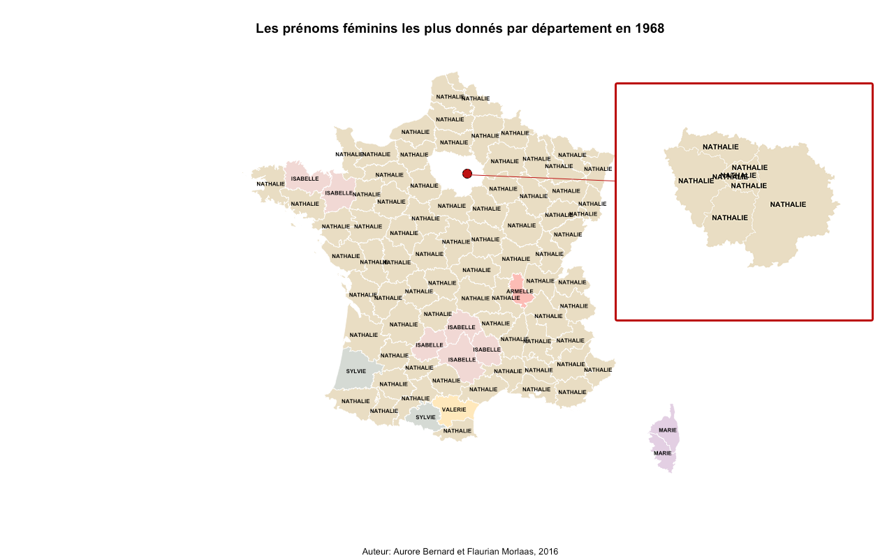 On note une grande majorité de départements où Nathalie était le prénom en vogue. Le tout semble plutôt uniforme.