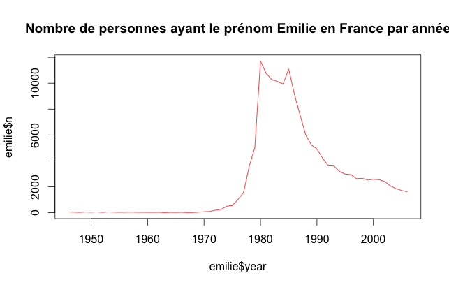 main="Nombre de personnes ayant le prénom Zinedine en France par année")